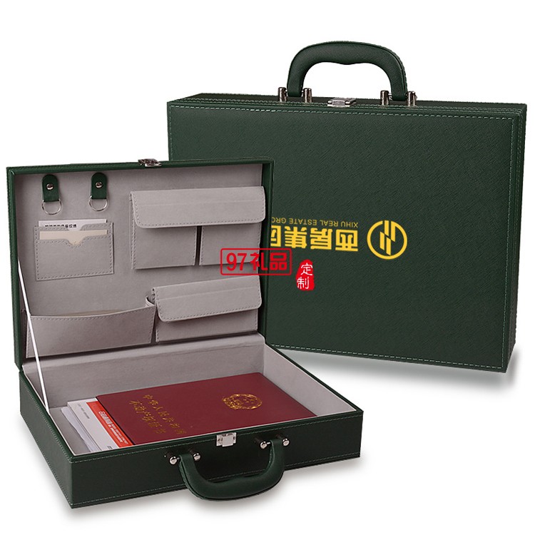 高檔皮革手提房地產(chǎn)a4合同交付鑰匙盒
