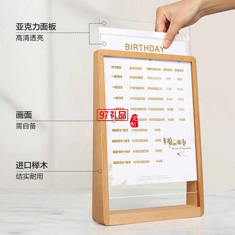 創(chuàng)意A4木質(zhì)框架桌面立牌臺(tái)卡木質(zhì)相框 可定制logo活動(dòng)小禮品