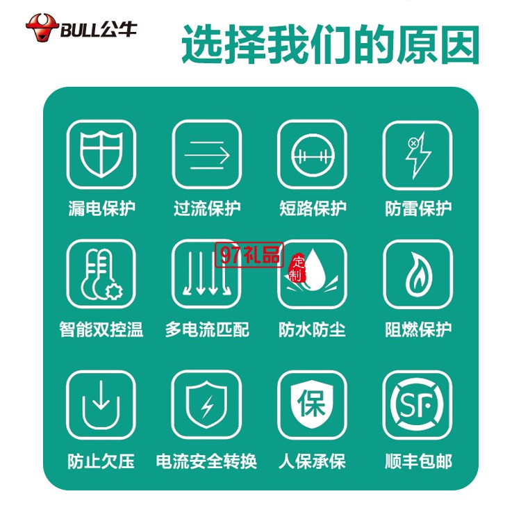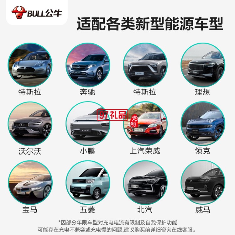 公牛充電槍電動(dòng)汽車通用特斯拉充電器 D2-A16B定制公司廣告禮品