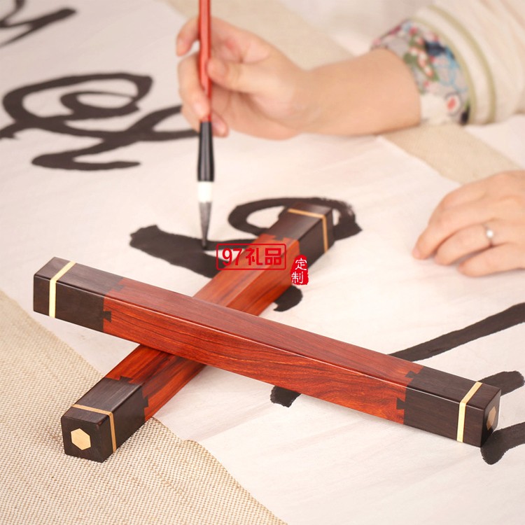 中國風(fēng)創(chuàng)意禮品文房四寶套裝復(fù)古黑檀木質(zhì)鎮(zhèn)尺