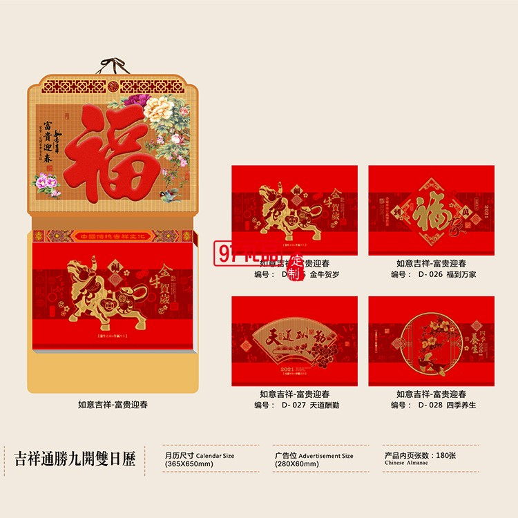 掛歷日歷公司保險(xiǎn)禮品日歷月歷大號(hào)福字萬(wàn)年歷廣告禮品定制