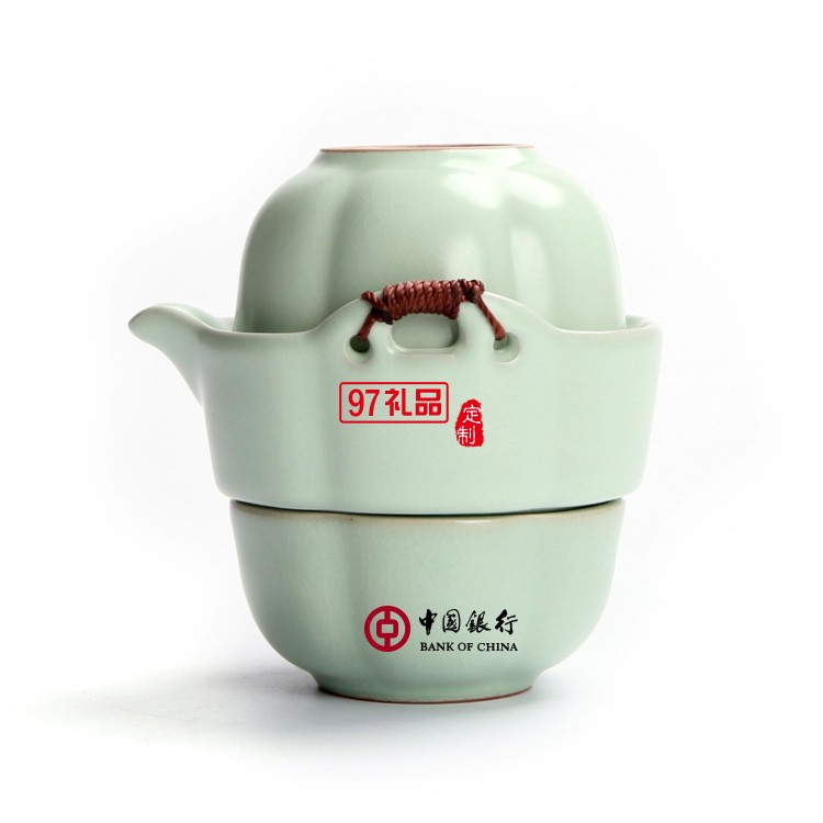 中國銀行定制 功夫茶具便攜式汝窯快客杯一壺一杯 可定制LOGO