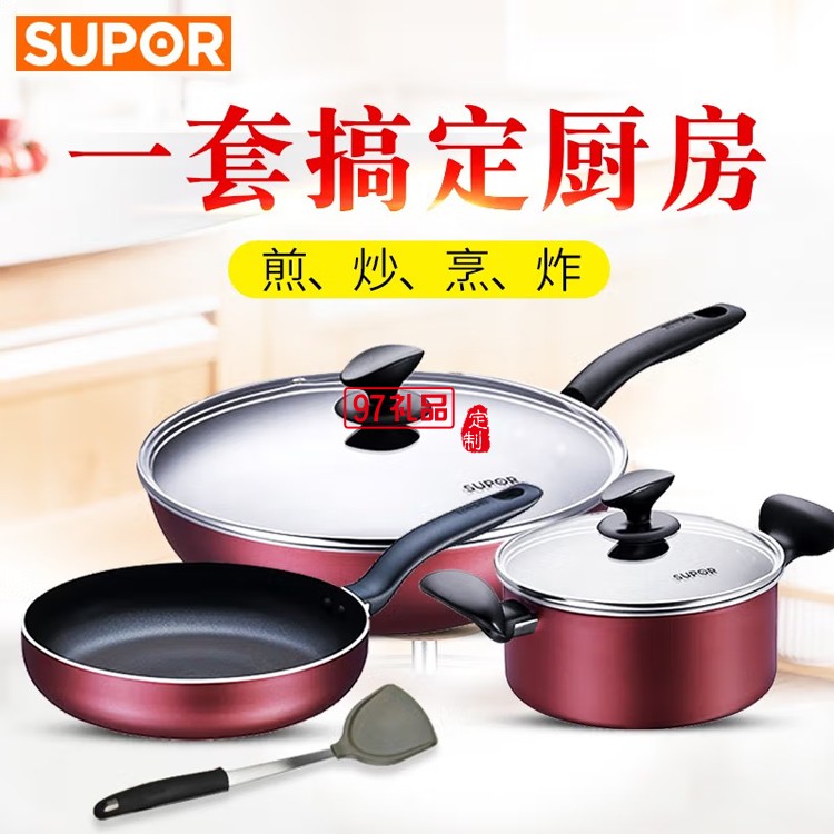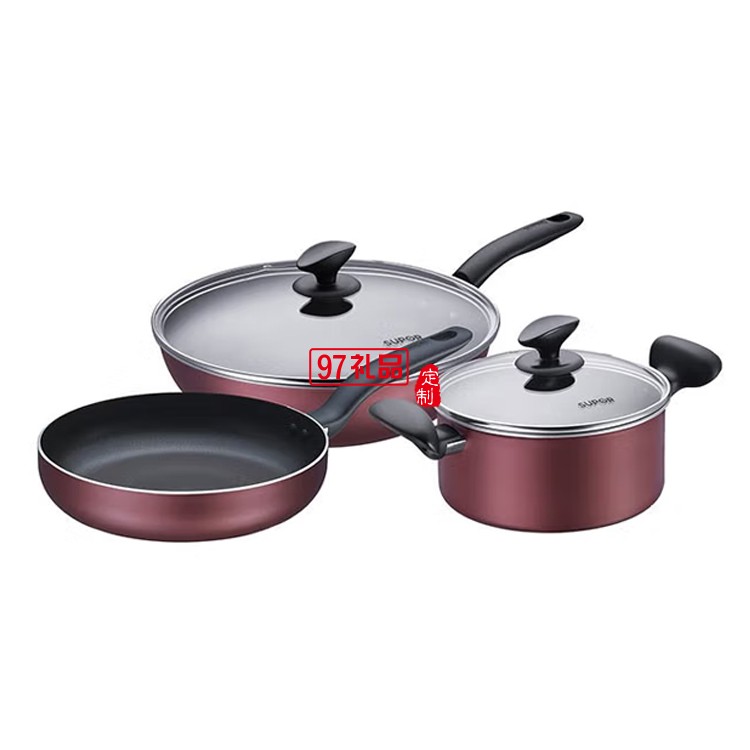 蘇泊爾炫彩不粘鍋炒鍋煎鍋湯奶鍋三件套T1314T定制公司廣告禮品