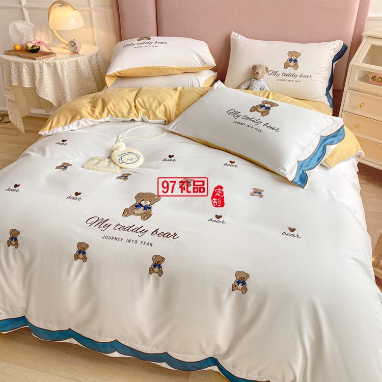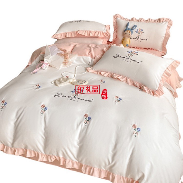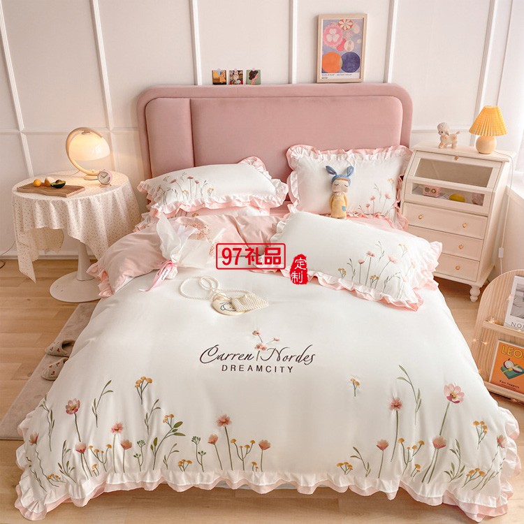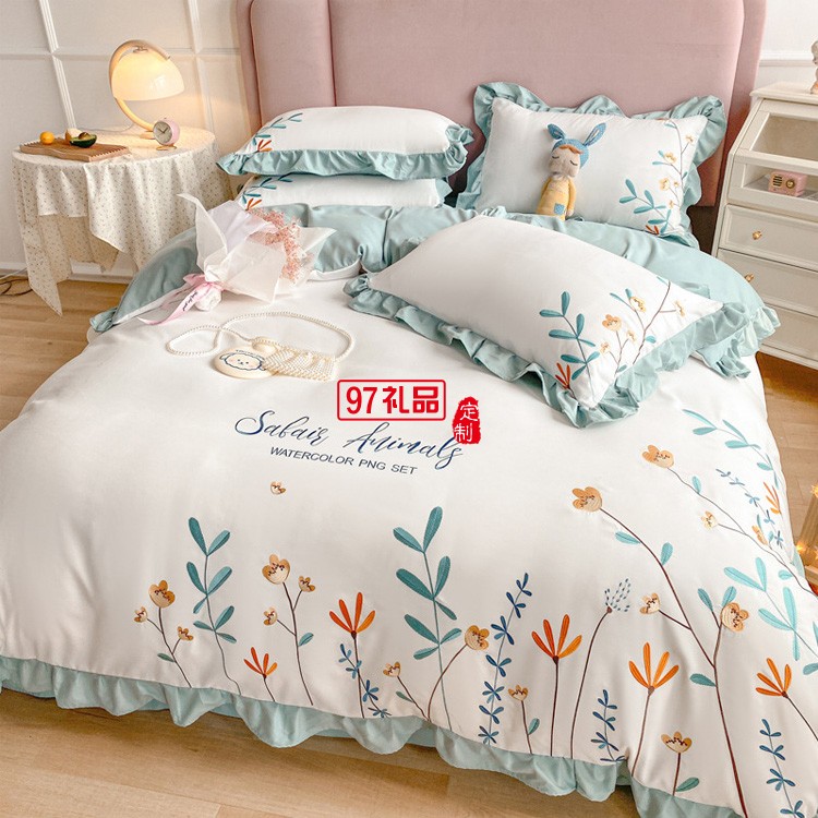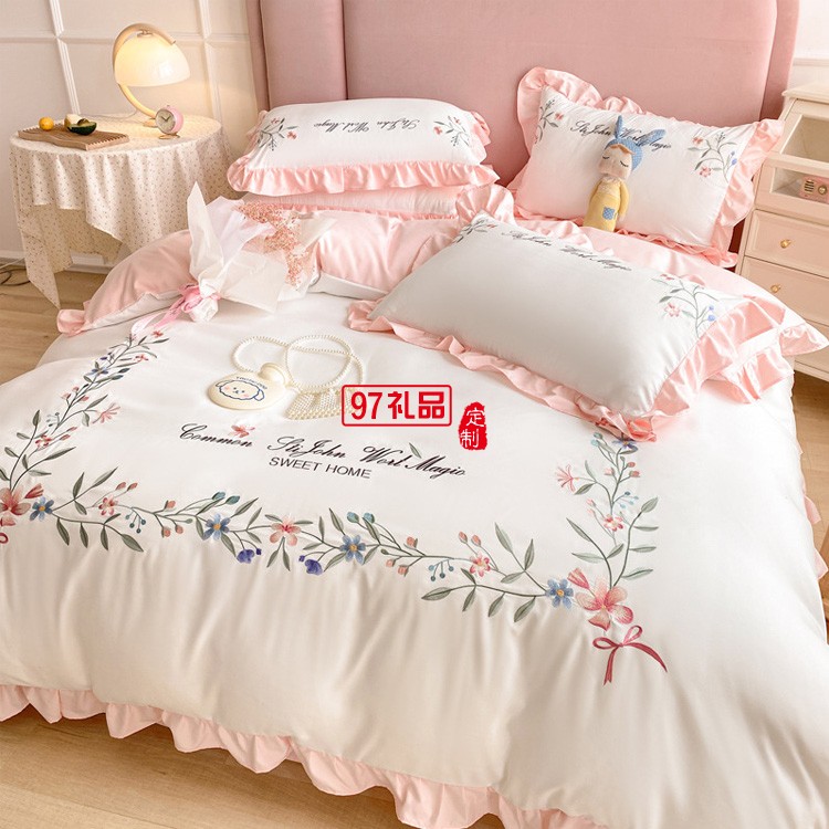 公主風(fēng)全棉繡花四件套純棉花卉刺繡小清新花邊被套床上用品