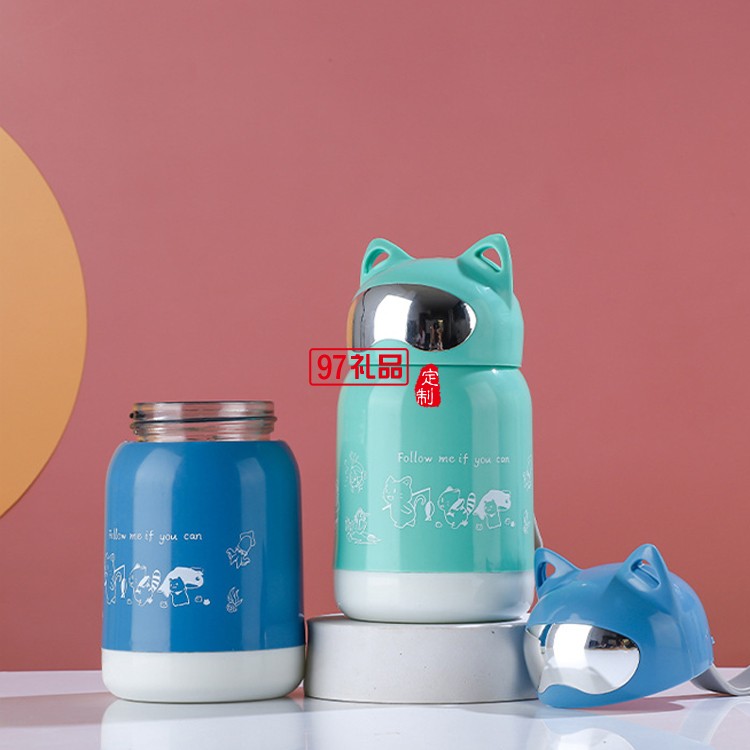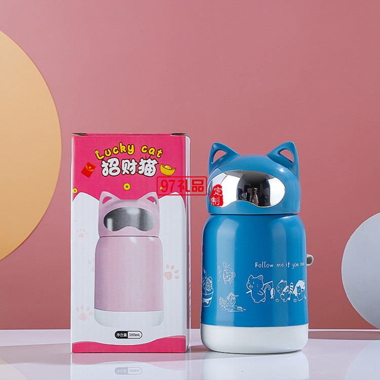 創(chuàng)意招財貓卡通水杯玻璃水杯地推小禮品杯雙層廣告玻璃杯