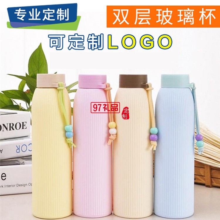 定制水杯雙珠玻璃杯創(chuàng)意禮品杯子廣告水杯玻璃塑玻杯定制logo