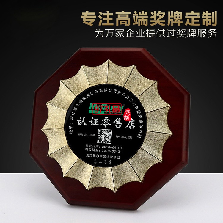 橡膠色實(shí)木獎(jiǎng)牌定制定做金屬授權(quán)牌木質(zhì)榮譽(yù)證書企業(yè)周年禮品