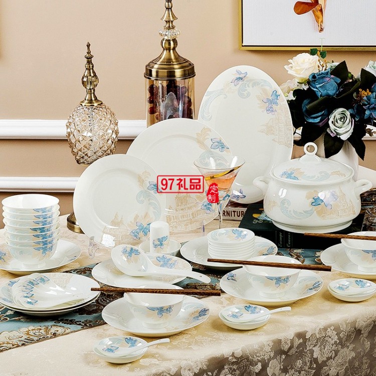 景德鎮(zhèn)陶瓷餐具工廠批發(fā)骨瓷碗盤(pán)碟套裝家用禮品LOGO定制餐具套裝