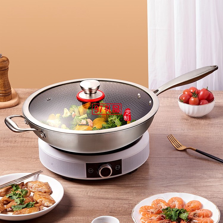 歐美達316不銹鋼物理不粘炒鍋多功能鍋 JZC30-A定制公司廣告禮品