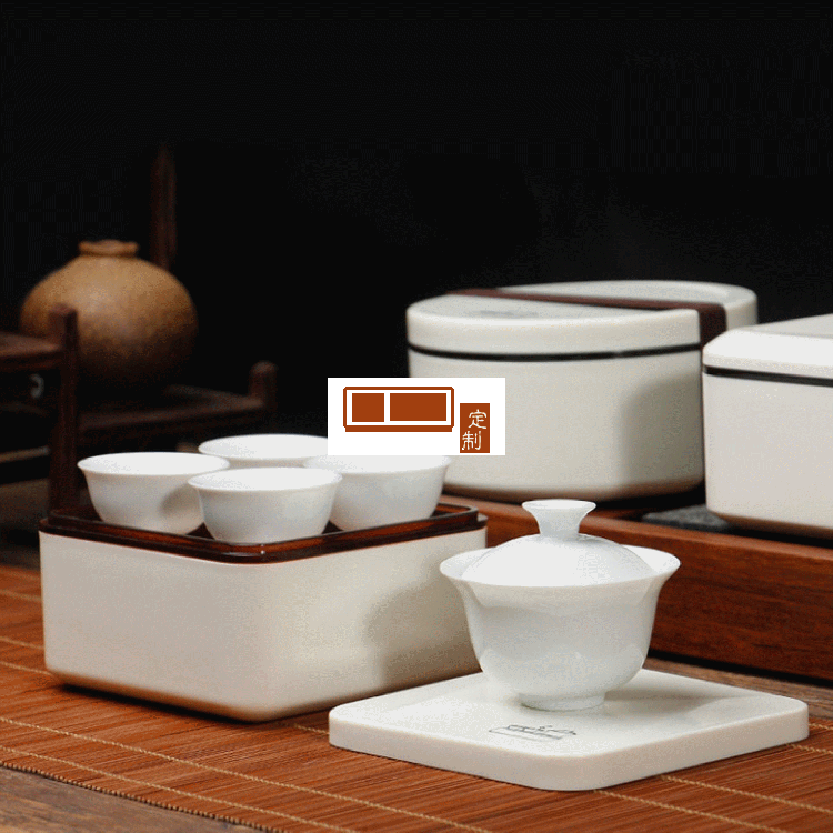 白瓷旅行茶具套裝 商務(wù)茶具套裝帶茶盤