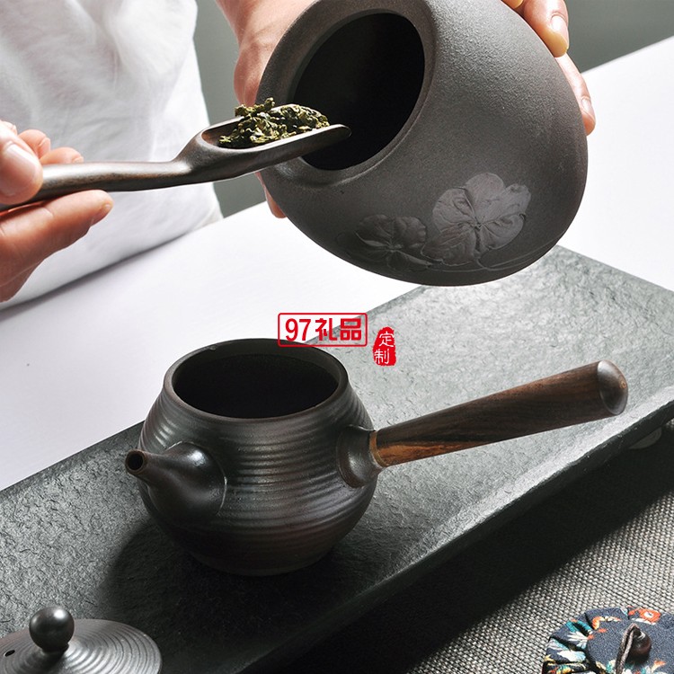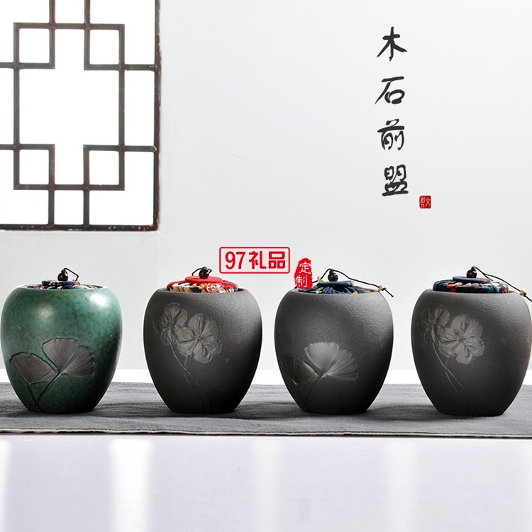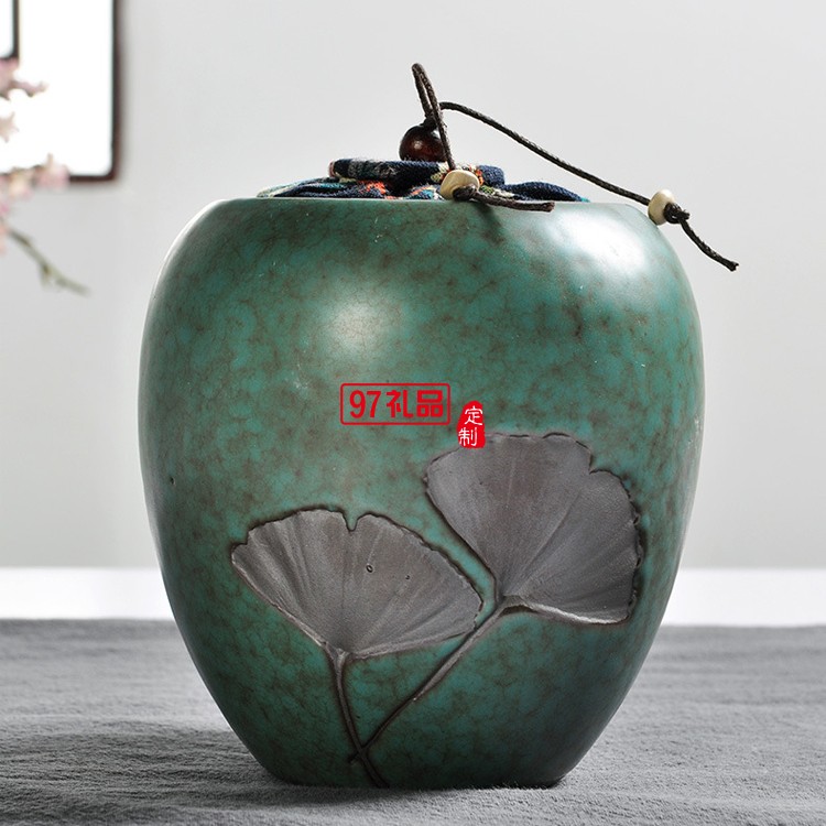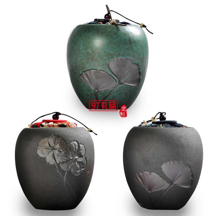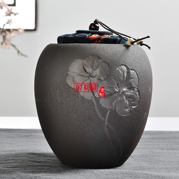 高溫日式粗陶茶葉罐浮雕普洱醒茶罐木蓋密封陶罐