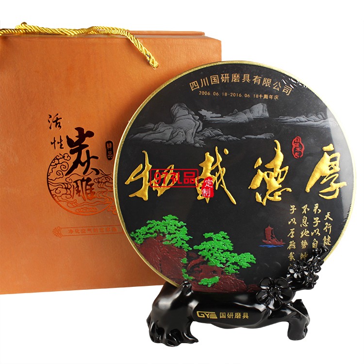 厚德載物活性炭雕擺件 國研磨具定制