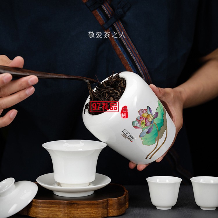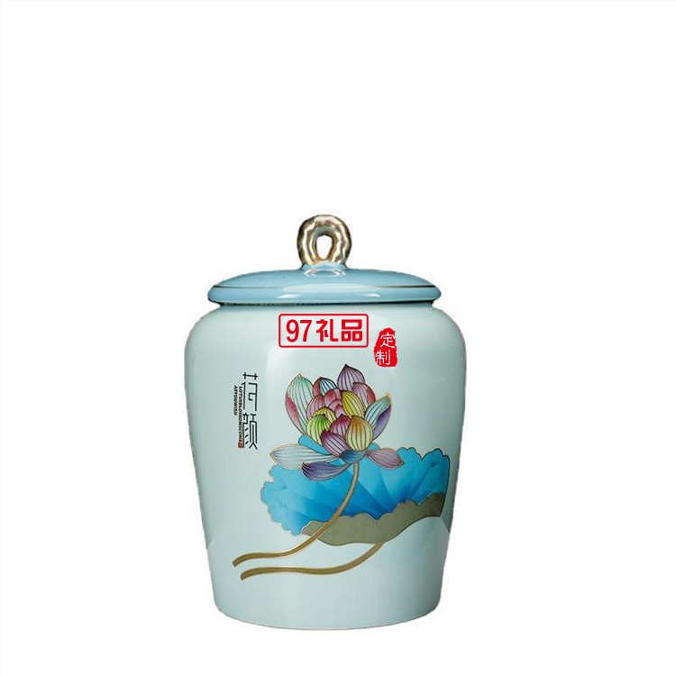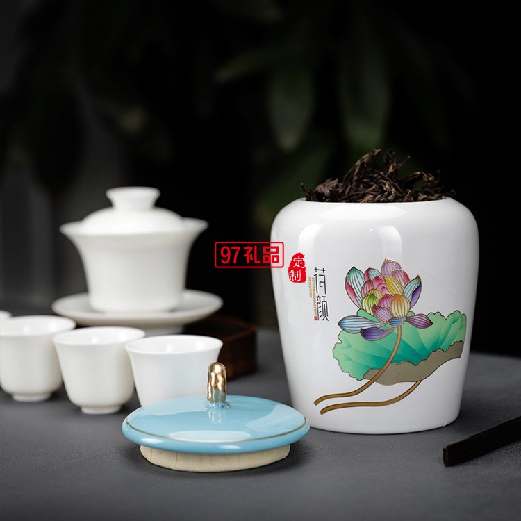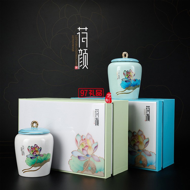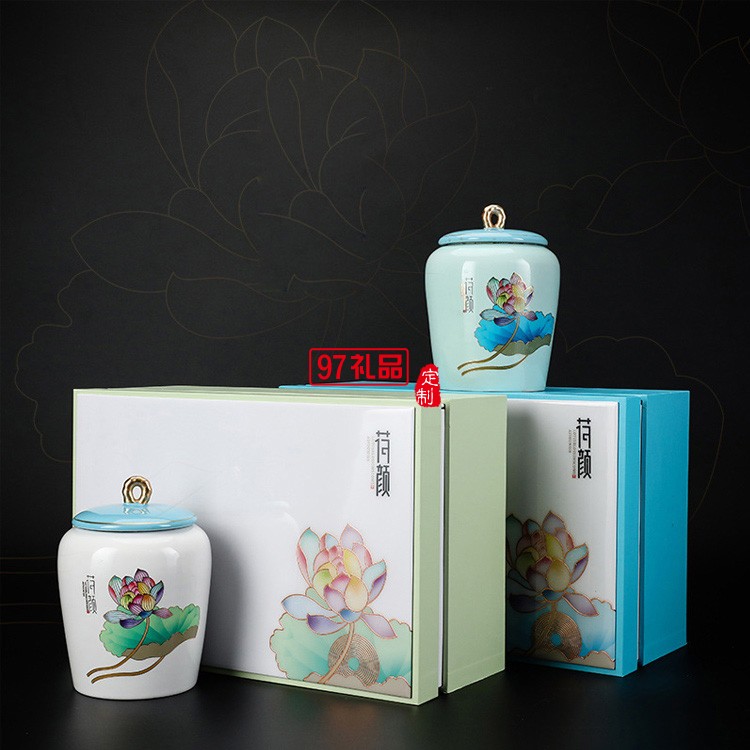 荷顏雙罐綠茶茶葉罐禮盒儲存茶缸茶罐陶瓷密封高檔商務(wù)禮品