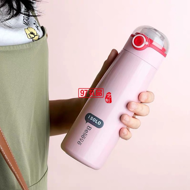 新款304不銹鋼保溫杯女學(xué)生彈跳杯戶外韓版水杯可定制logo