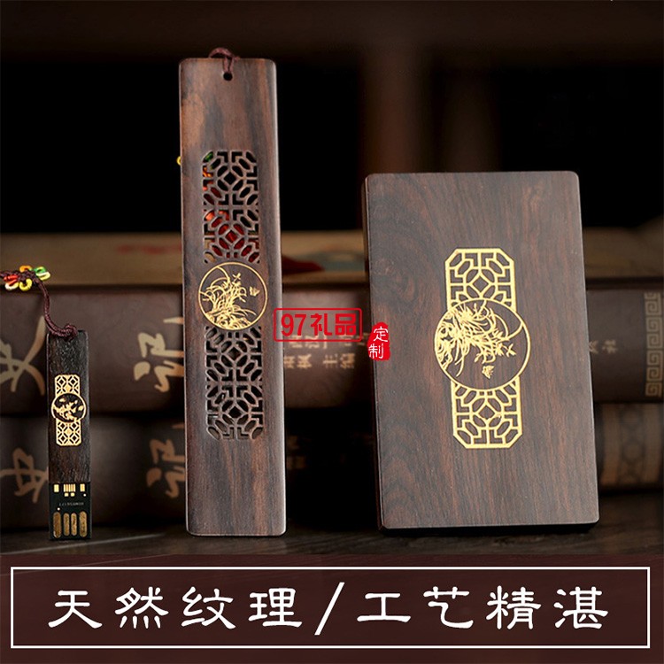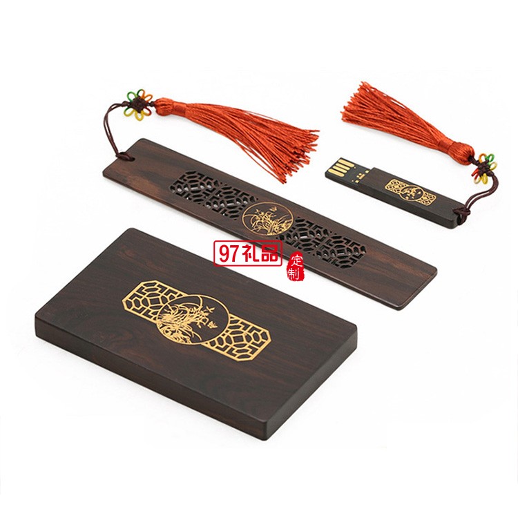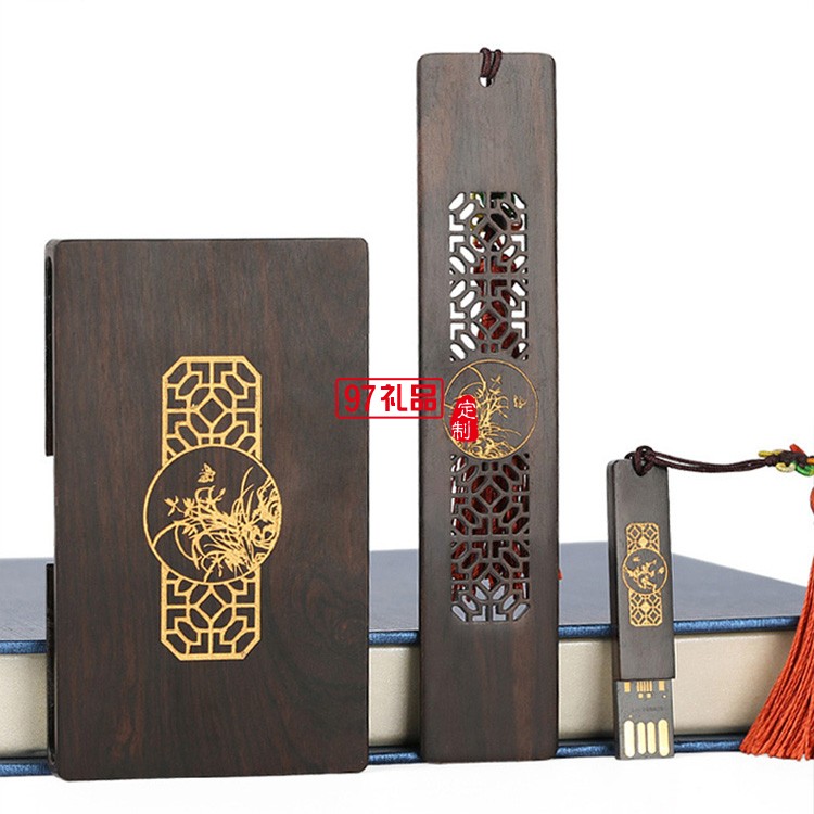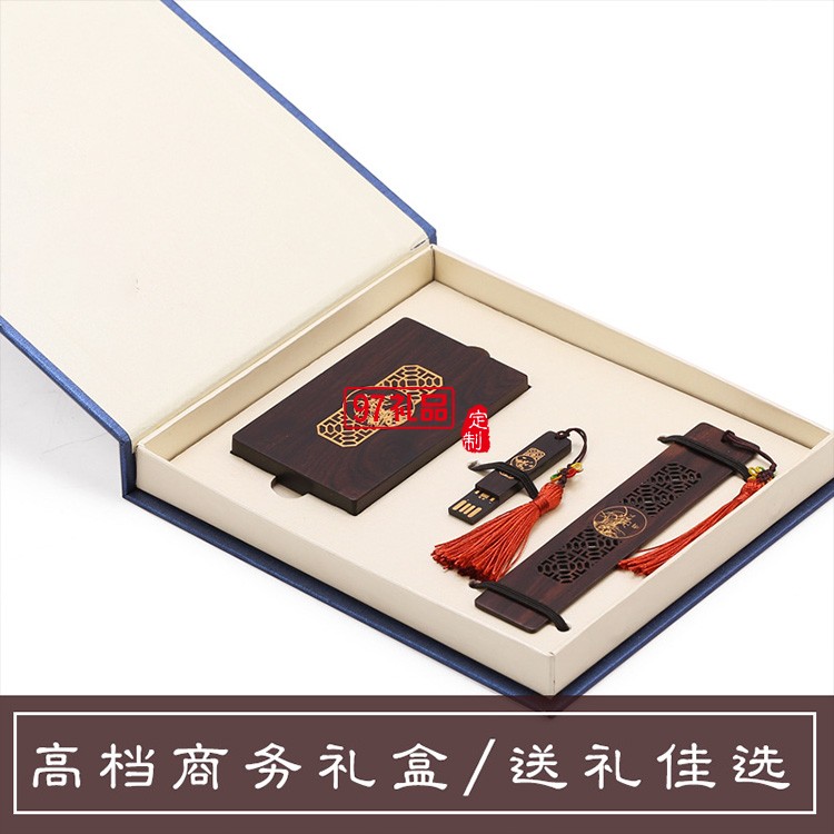 紅木質(zhì)U盤名片夾書簽定制套裝