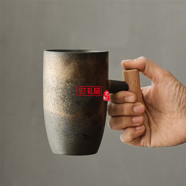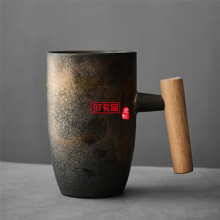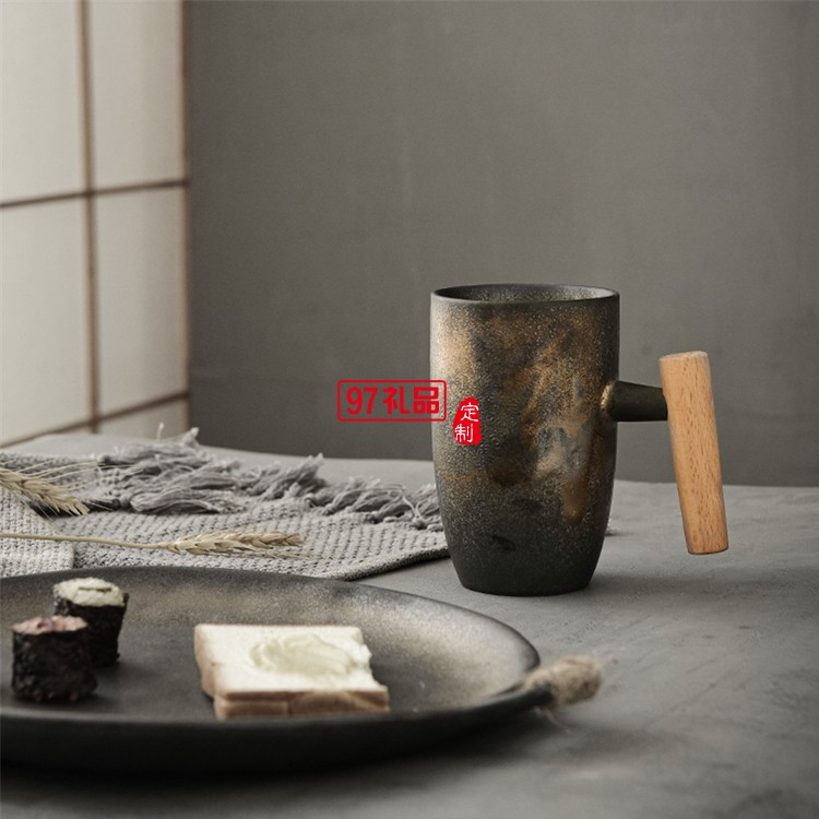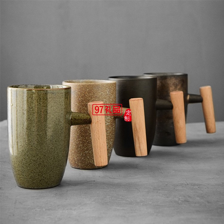 創(chuàng)意復(fù)古馬克杯日式情侶杯子簡約咖啡杯個(gè)性木柄水杯出口陶瓷杯