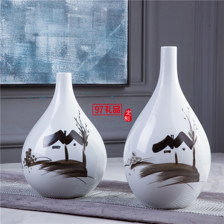 手繪鄉(xiāng)情陶瓷擺件 花瓶含托盤架 家居賓館酒店大廳開張開業(yè)展會用