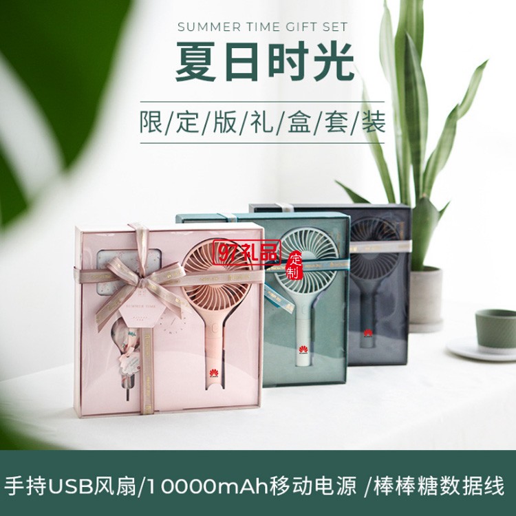 華為定制清涼夏季手持風(fēng)扇移動(dòng)電源套裝送客戶禮品
