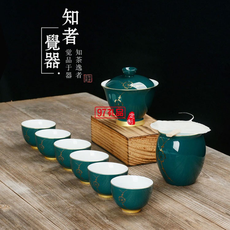 古典旗袍綠金釉9件套