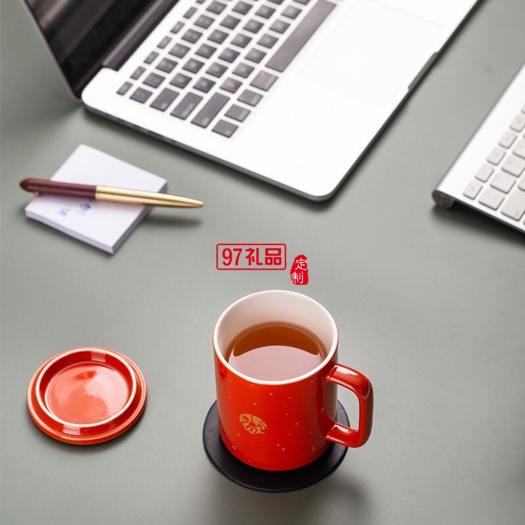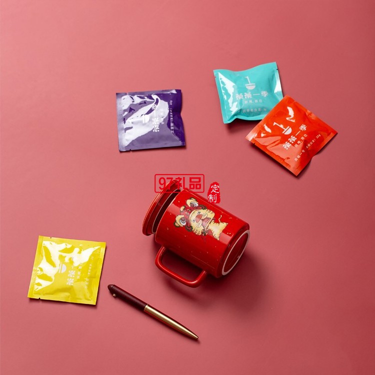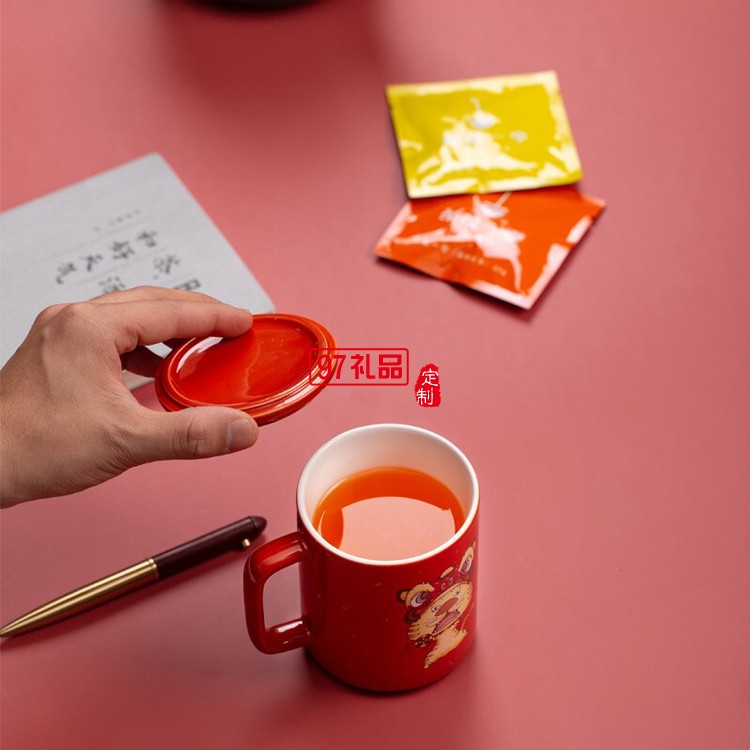 虎虎生威辦公杯馬克杯帶茶桐木筆新年禮盒套裝