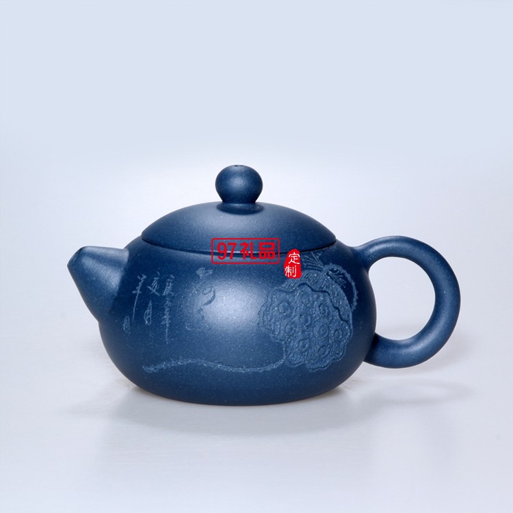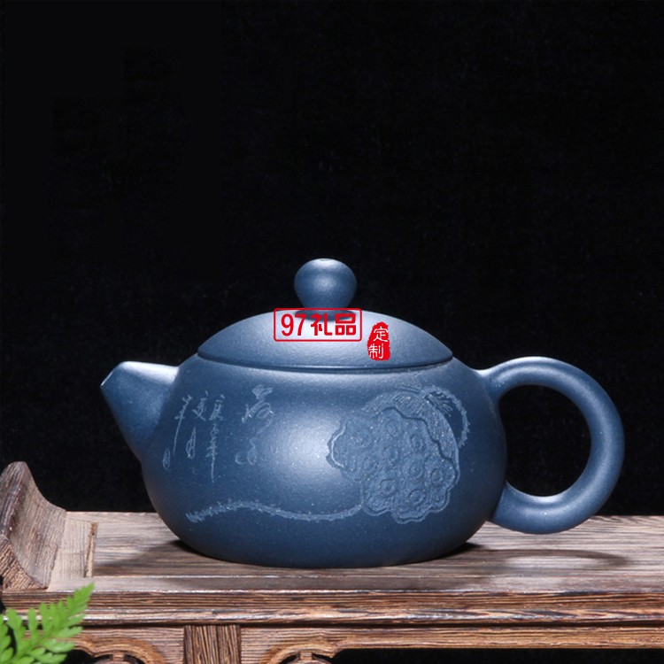 宜興紫砂壺西施茶壺天青泥中品全手工刻繪茶具