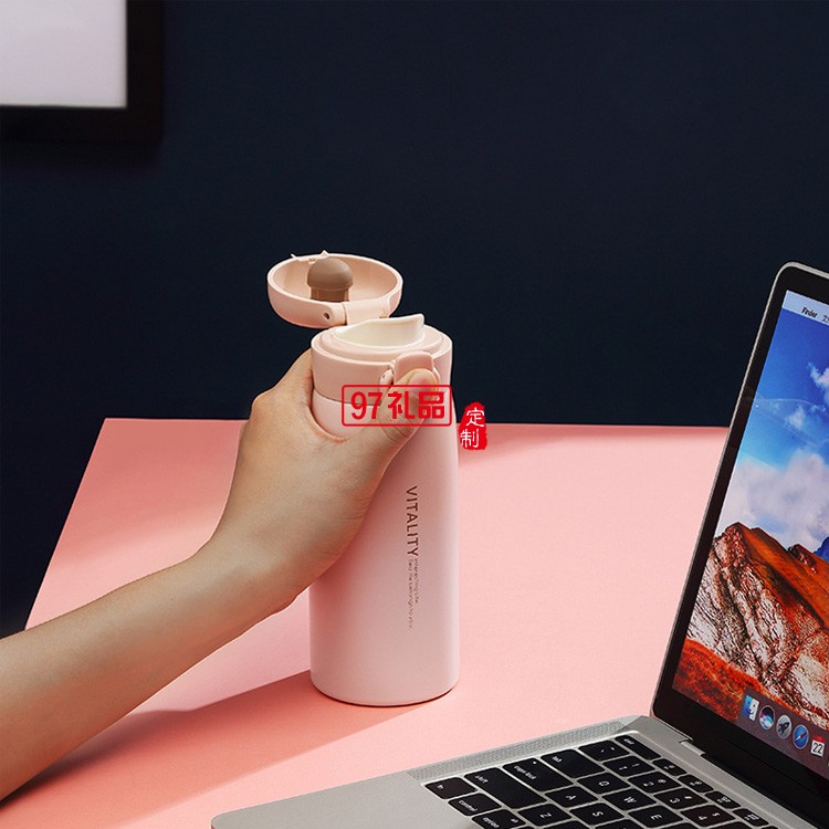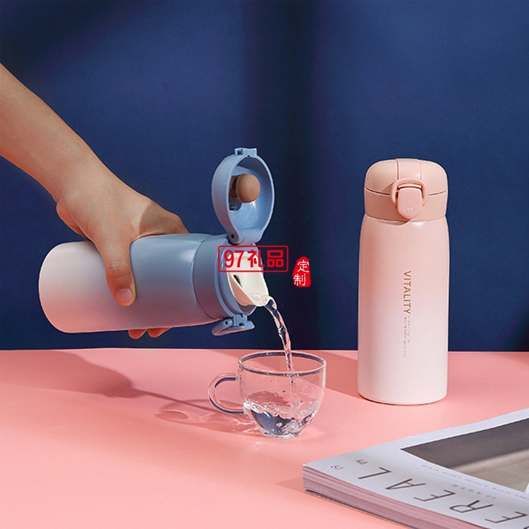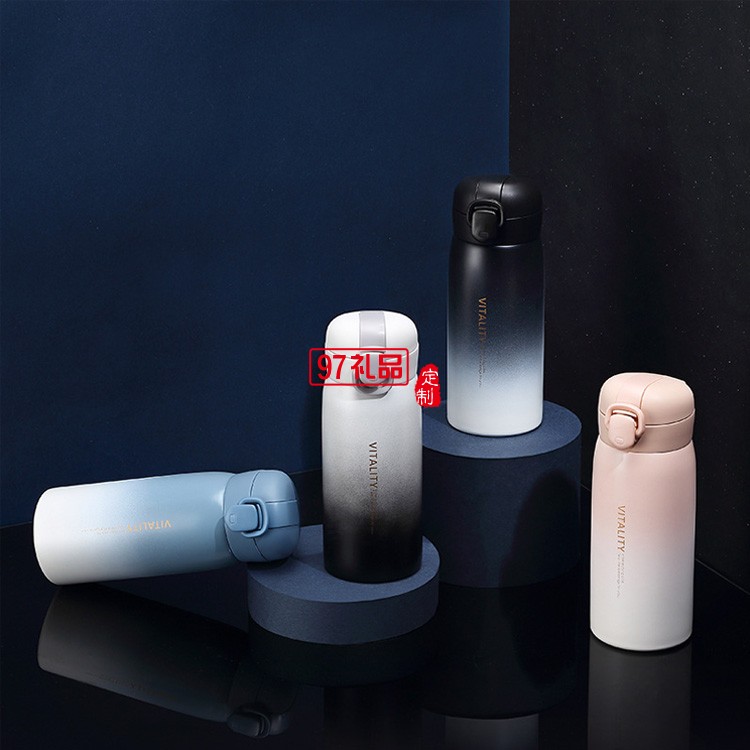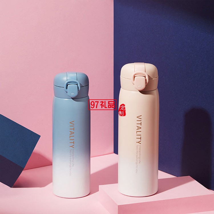 創(chuàng)意漸變保溫杯女304不銹鋼彈跳蓋車載水杯商務(wù)禮品