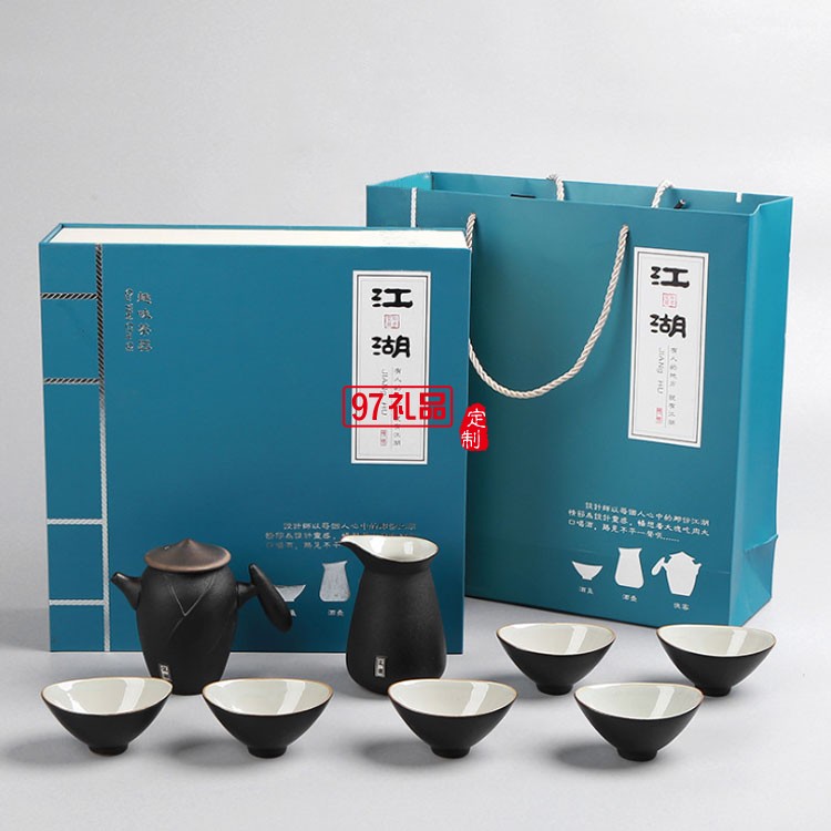 江湖黑陶瓷功夫茶具高檔商務(wù)送禮可定制LOGO
