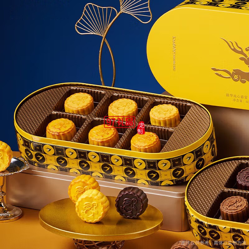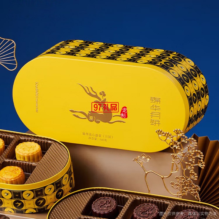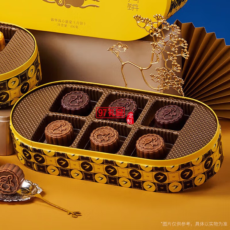 錦華流心盛宴雙層禮盒600g厚乳芝士生椰拿鐵黑巧榛子多味流心月餅