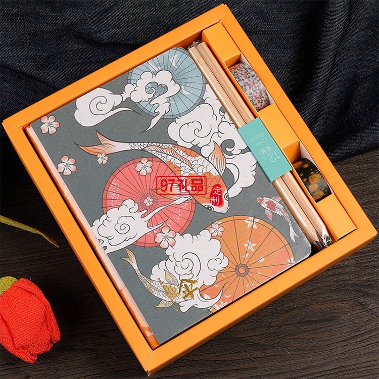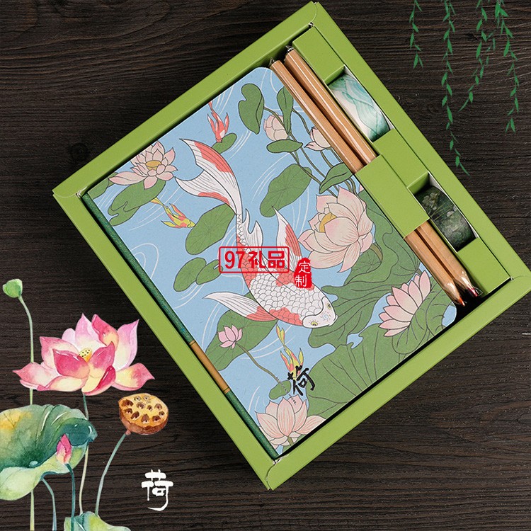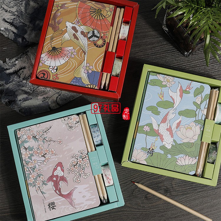 中國(guó)風(fēng)特色復(fù)古錦鯉記事本套裝