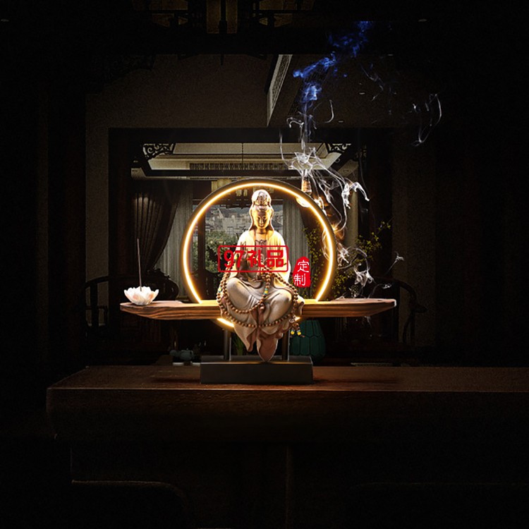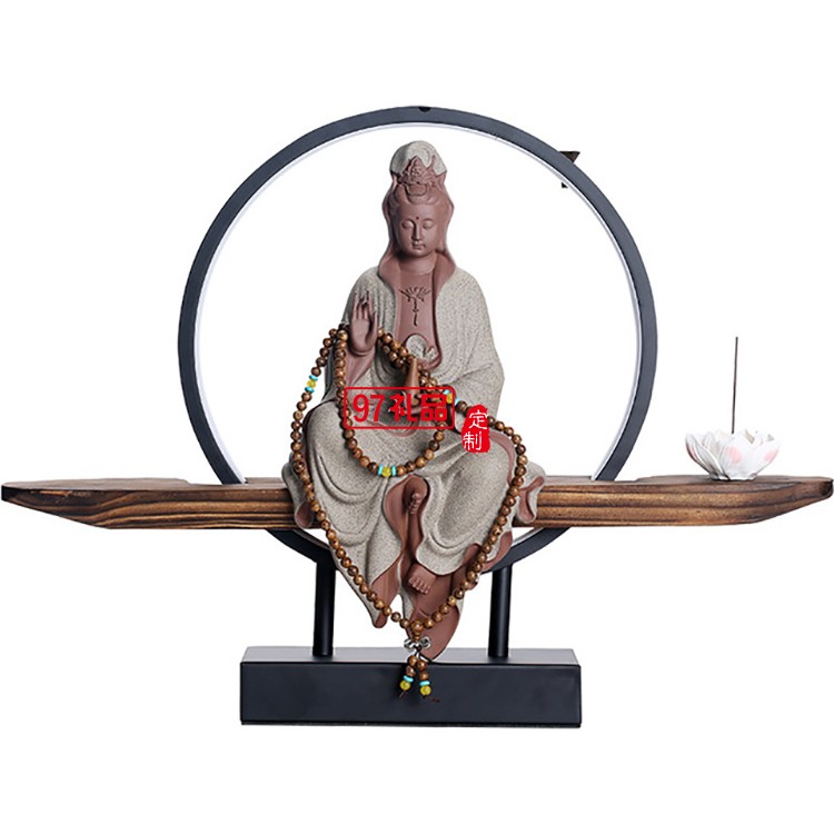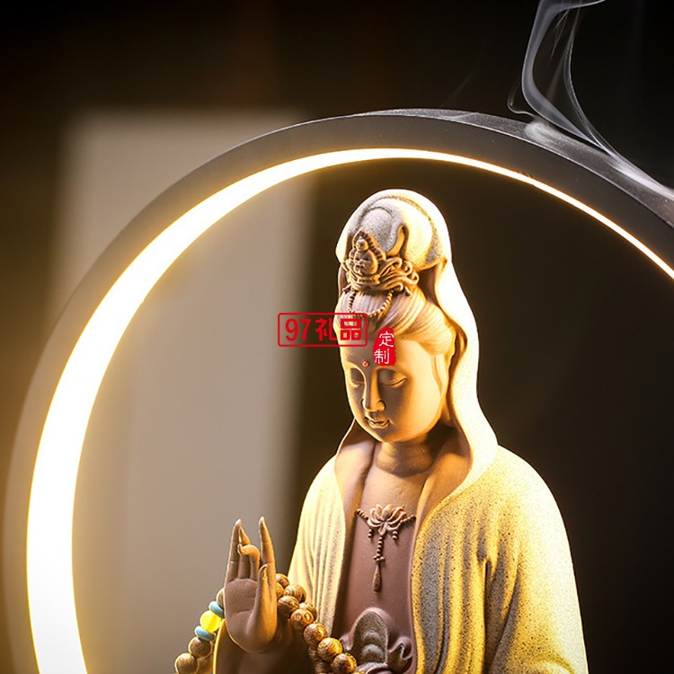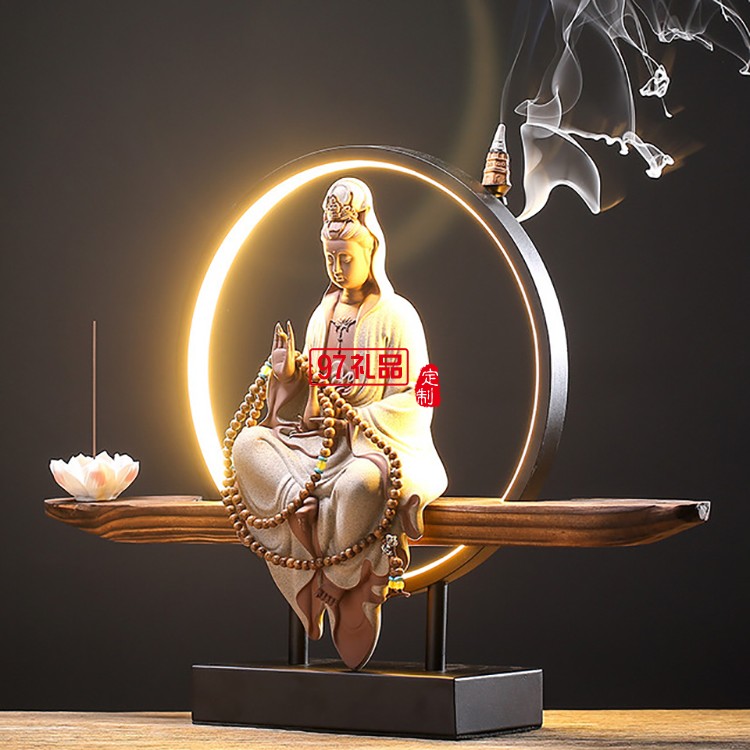 禪意擺件玄關(guān)客廳觀音佛像陶瓷鎮(zhèn)宅創(chuàng)意倒流香裝飾品工藝品