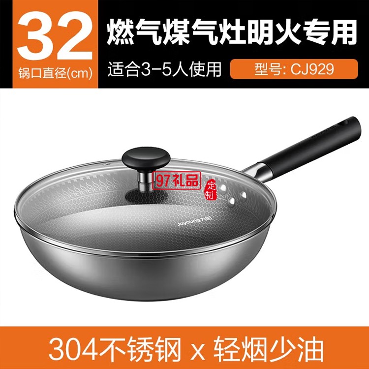 九陽304不銹鋼炒鍋 不粘炒菜鍋CJ929定制公司廣告禮品