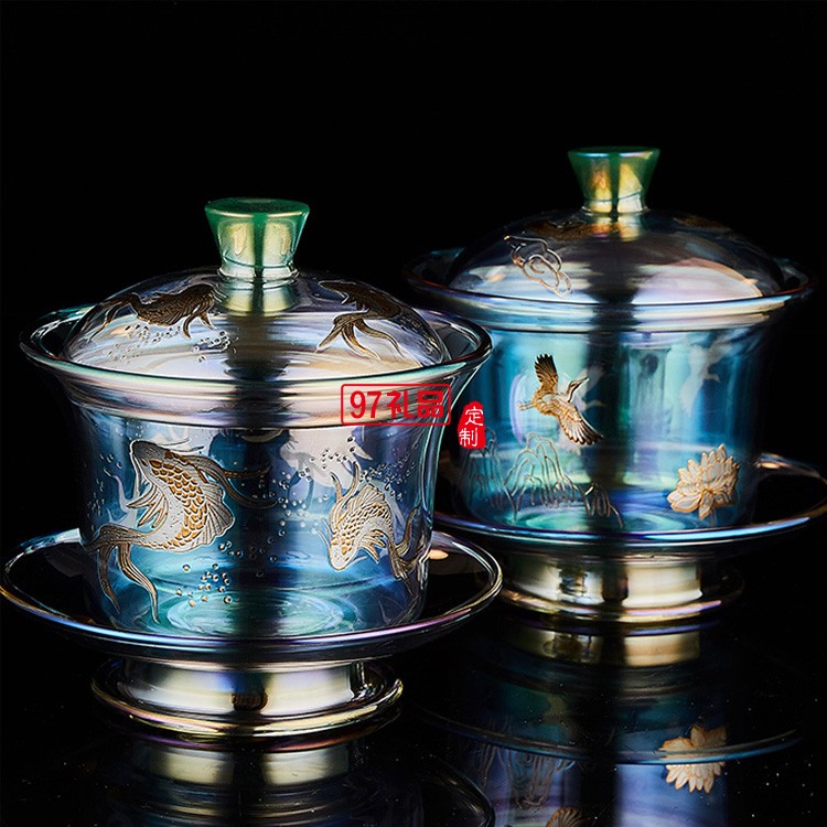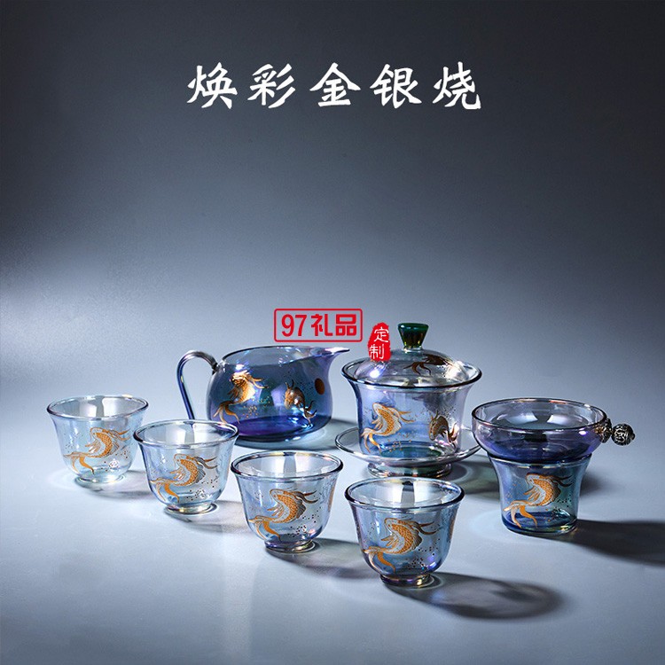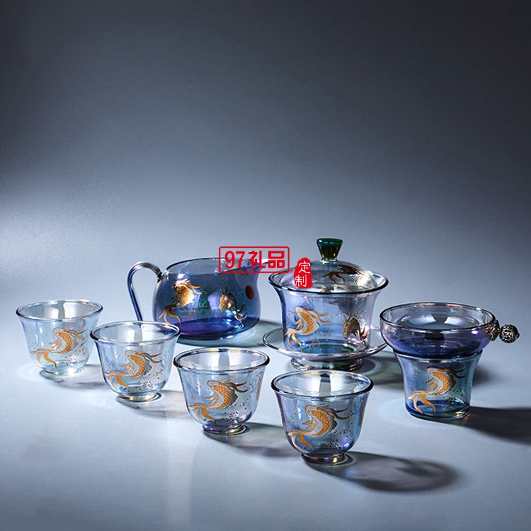玻璃茶具套裝 整套茶具加厚耐熱玻璃蓋碗高檔商務禮品定制