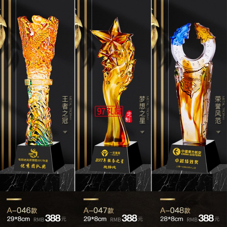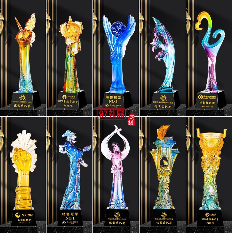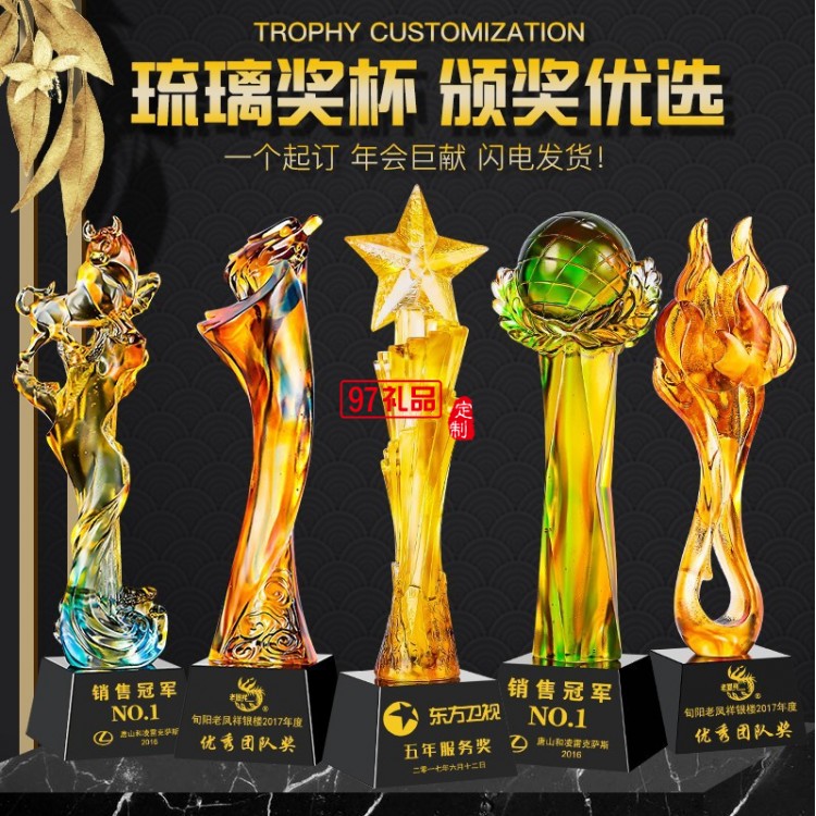高檔琉璃獎(jiǎng)杯定制公司年會(huì)比賽頒獎(jiǎng)創(chuàng)意琉璃定做