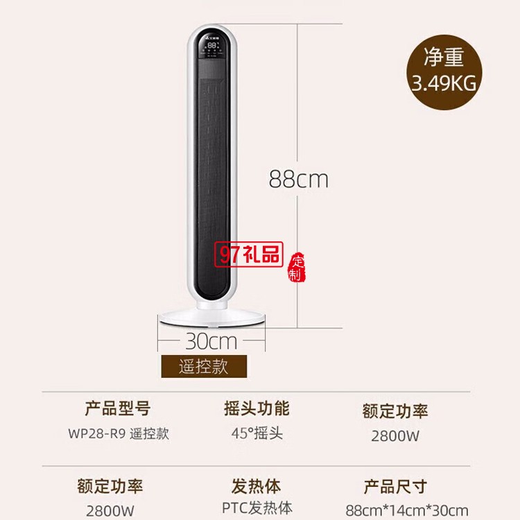 艾美特暖風(fēng)機(jī)取暖器遙控定時電暖器片WP28-R9定制公司廣告禮品