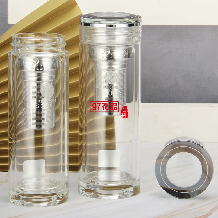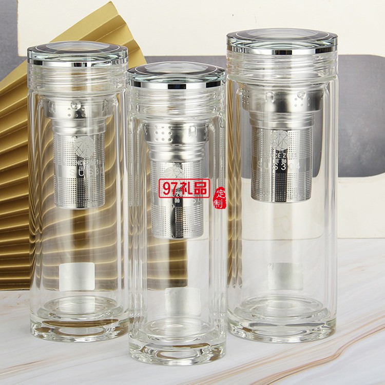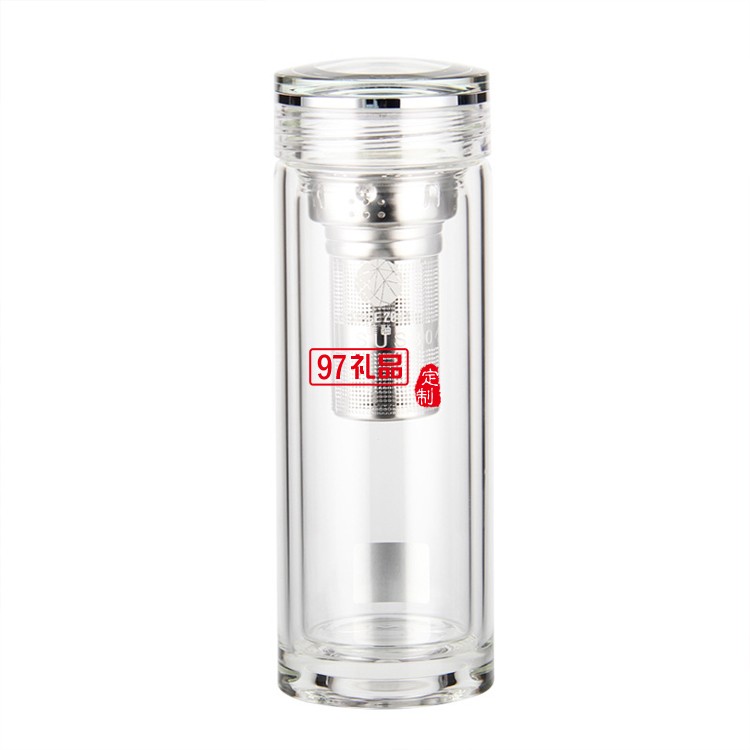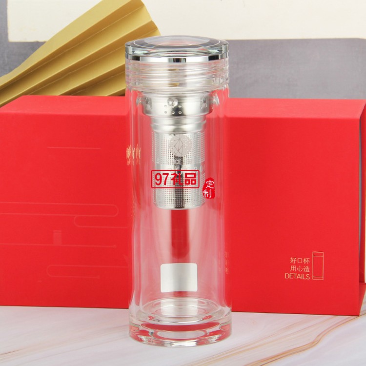匡迪406號雙層水晶玻璃杯簡約商務(wù)辦公泡茶杯廣告禮品杯可定logo