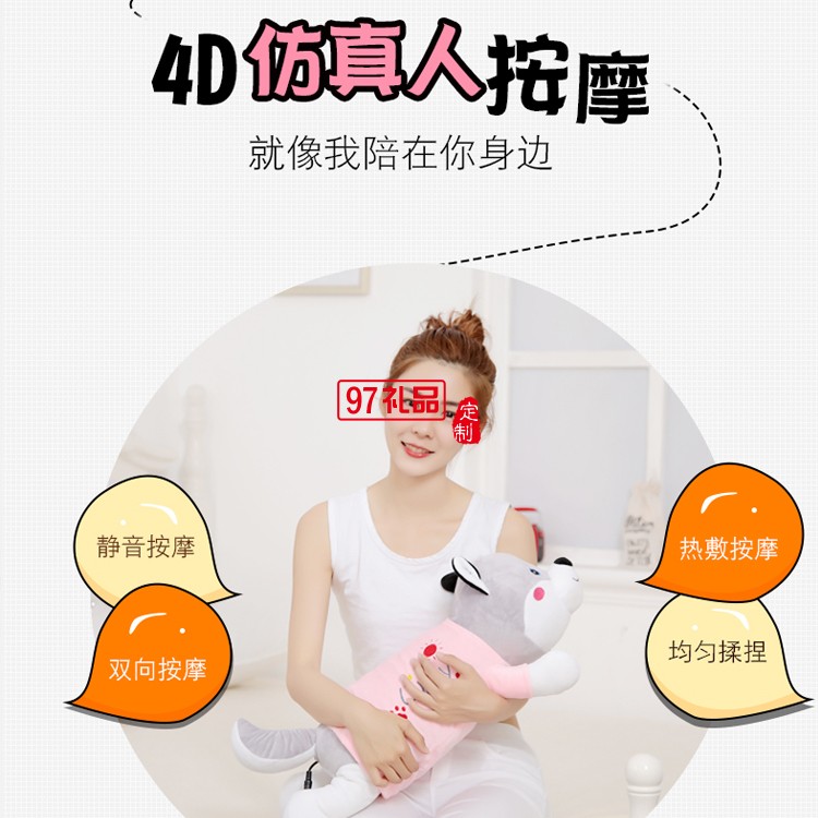 會(huì)按摩的小豬抱枕毛絨玩具肩背部腰部頸椎按摩器定制公司廣告禮品
