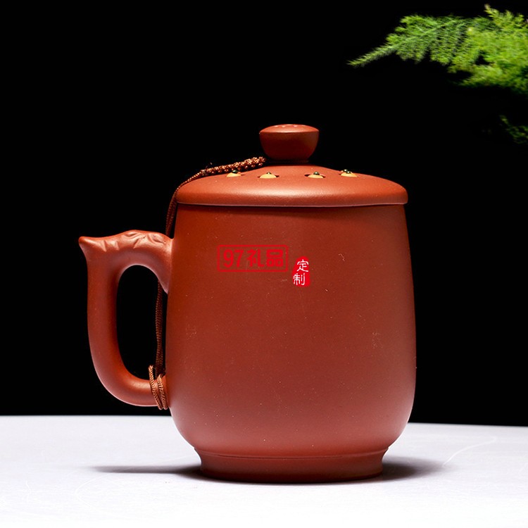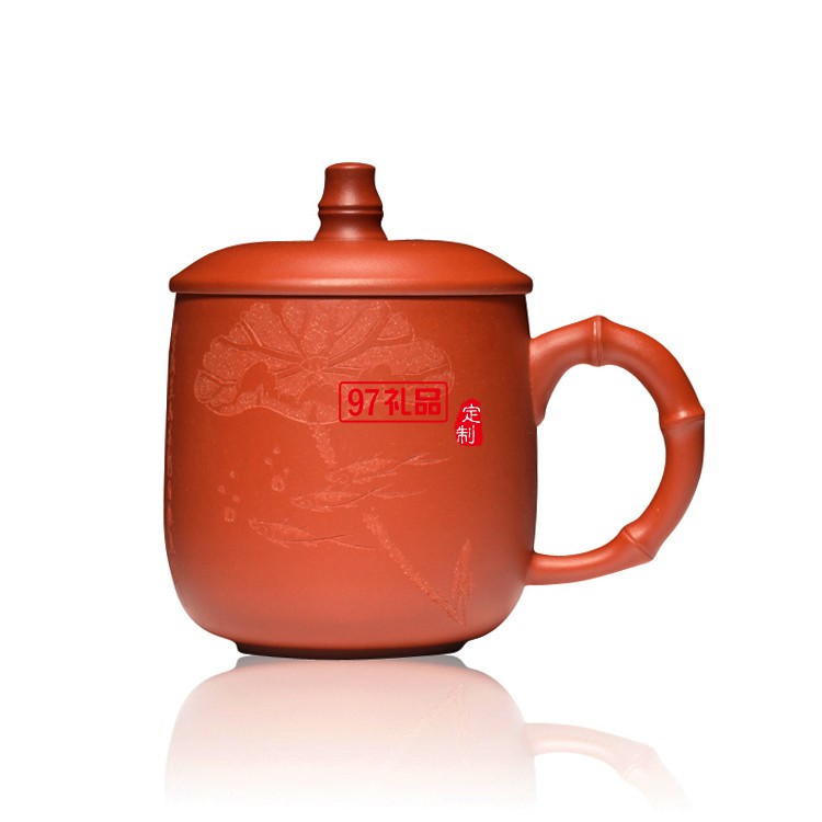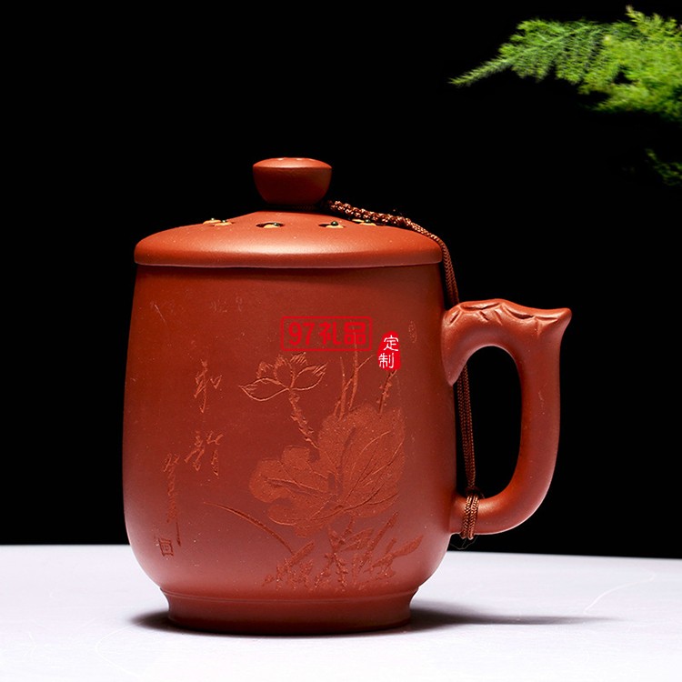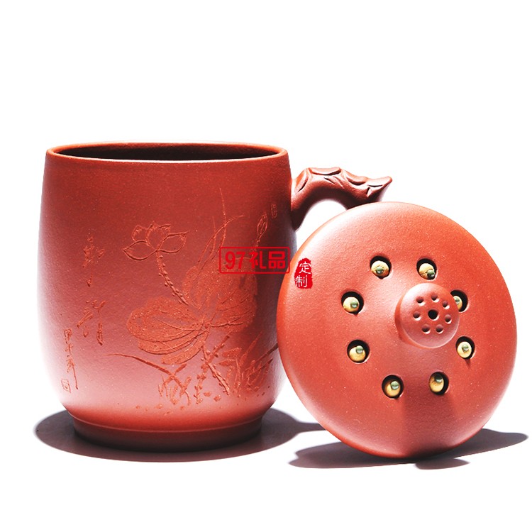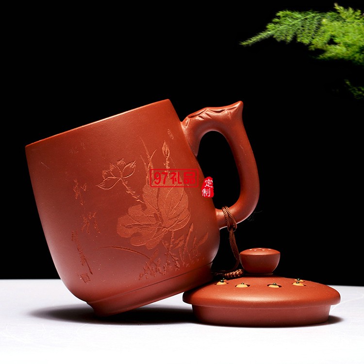 紫砂杯禮品茶具手工刻荷花蓮子茶杯 手柄杯 復古杯 可定制logo