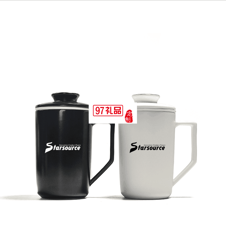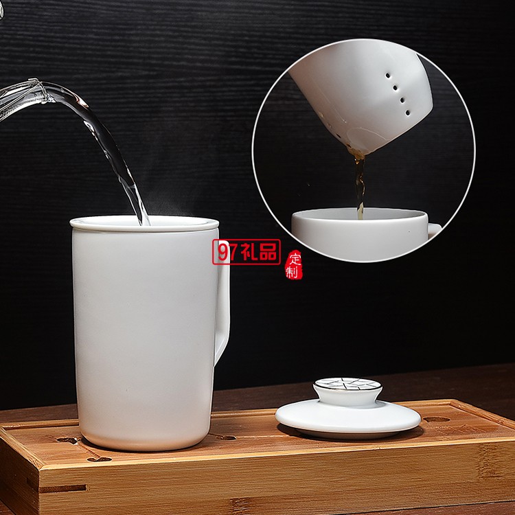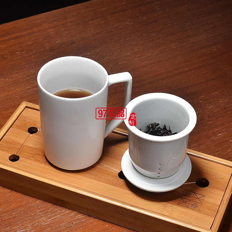 定窯陶瓷馬克杯過(guò)濾帶蓋陶瓷茶杯創(chuàng)意杯子