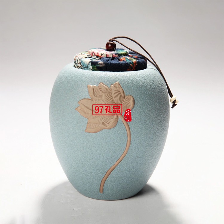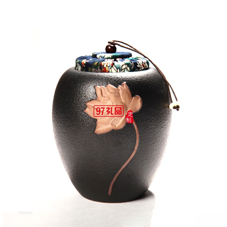 彩陶罐粗陶荷花茶葉罐陶瓷密封罐禮盒裝公司廣告禮品定制