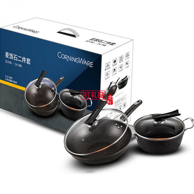 美國康寧廚具麥飯石二件套炒鍋32cm湯鍋24cm送客戶禮品員工福利定制