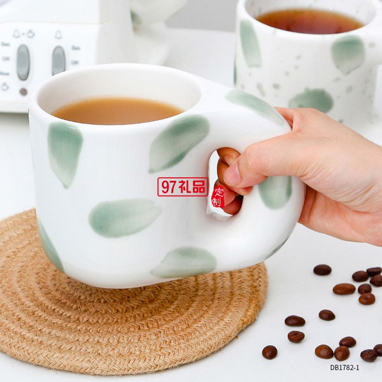 定制手繪陶瓷杯創(chuàng)意卡通潑墨馬克杯ins風(fēng)胖胖咖啡杯