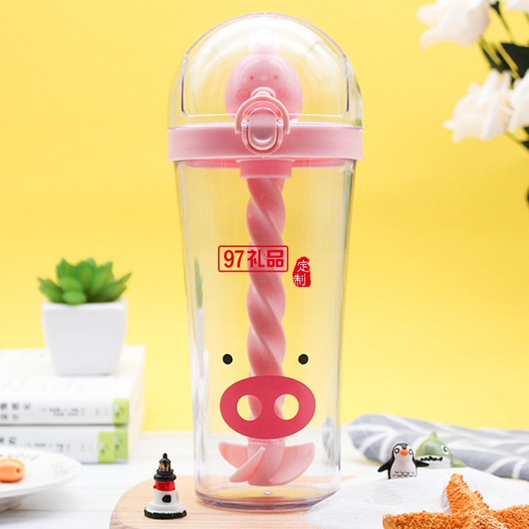 創(chuàng)意隨手兒童杯子 學(xué)生旋轉(zhuǎn)可愛攪拌吸管水杯