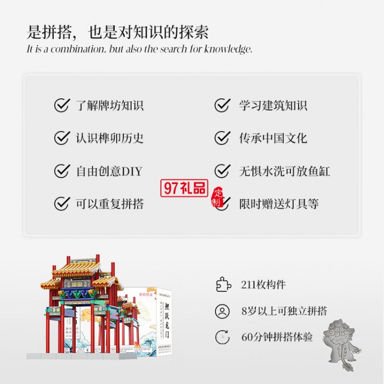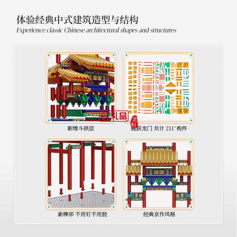 魚躍龍門牌坊故宮榫卯積木玩具中國風(fēng)古建筑潮玩禮物拼裝模型diy