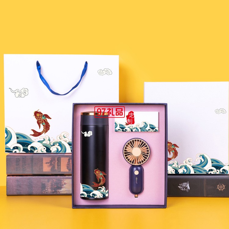周年慶員工福利保溫杯傘迷你風(fēng)扇充電款套裝三件套