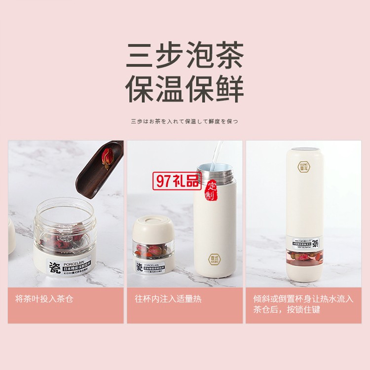 茶水分離水杯陶瓷內(nèi)膽不銹鋼保溫杯KS20-WT021定制公司廣告禮品
