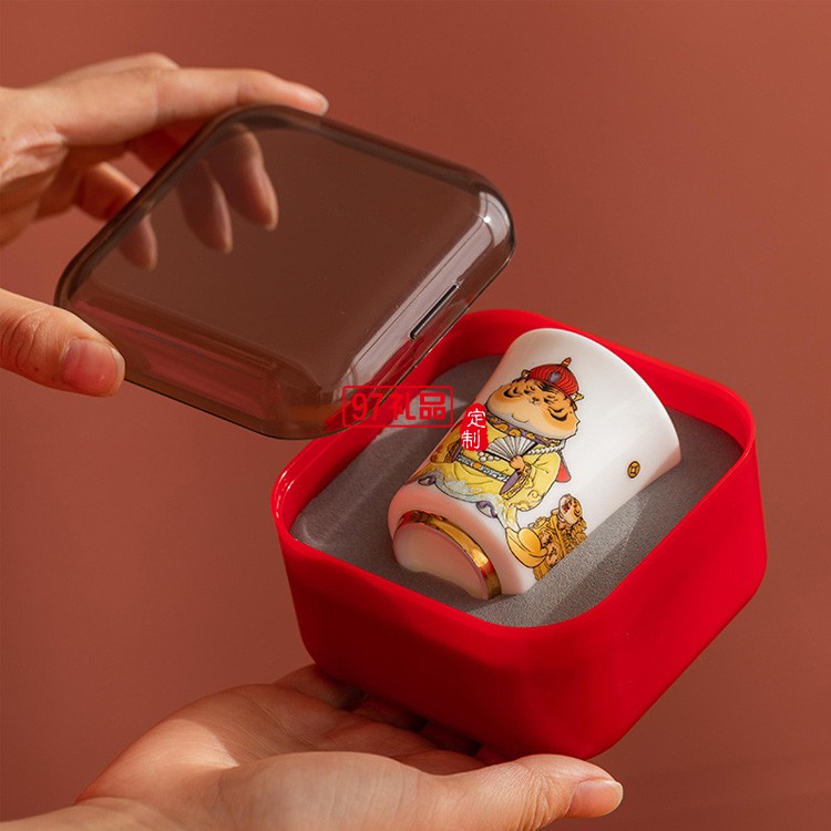 羊脂玉瓷主人杯白瓷高端茶杯單個老虎杯品茗杯虎年個人茶盞禮盒