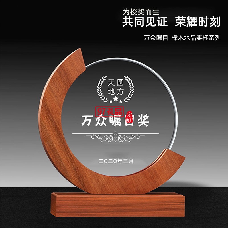 木質(zhì)獎(jiǎng)牌 優(yōu)秀員工比賽頒獎(jiǎng)紀(jì)念水晶獎(jiǎng)杯擺件