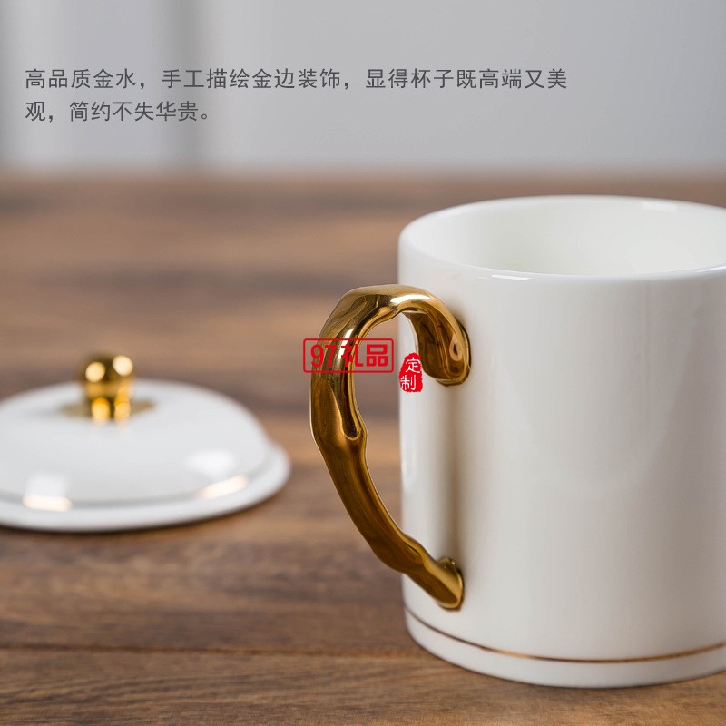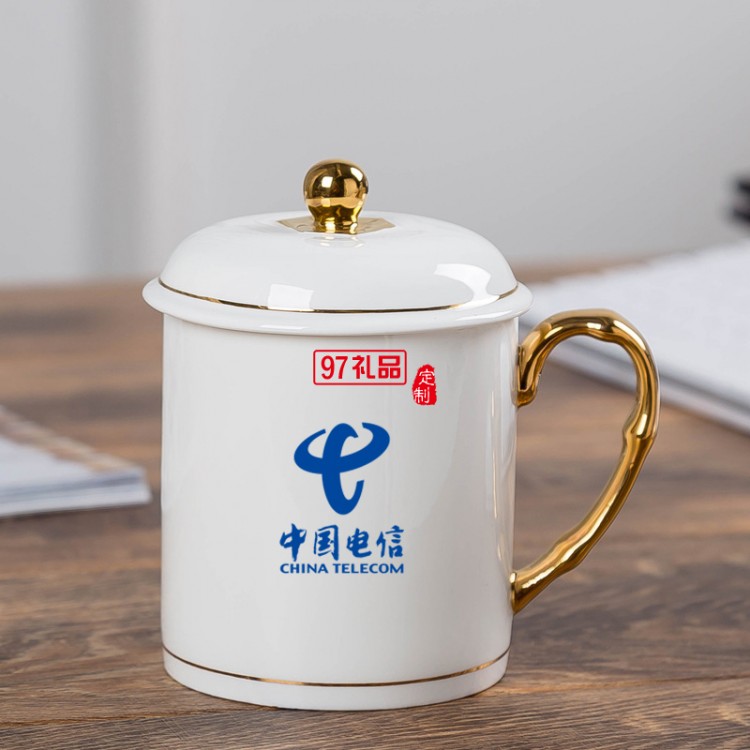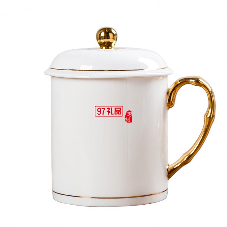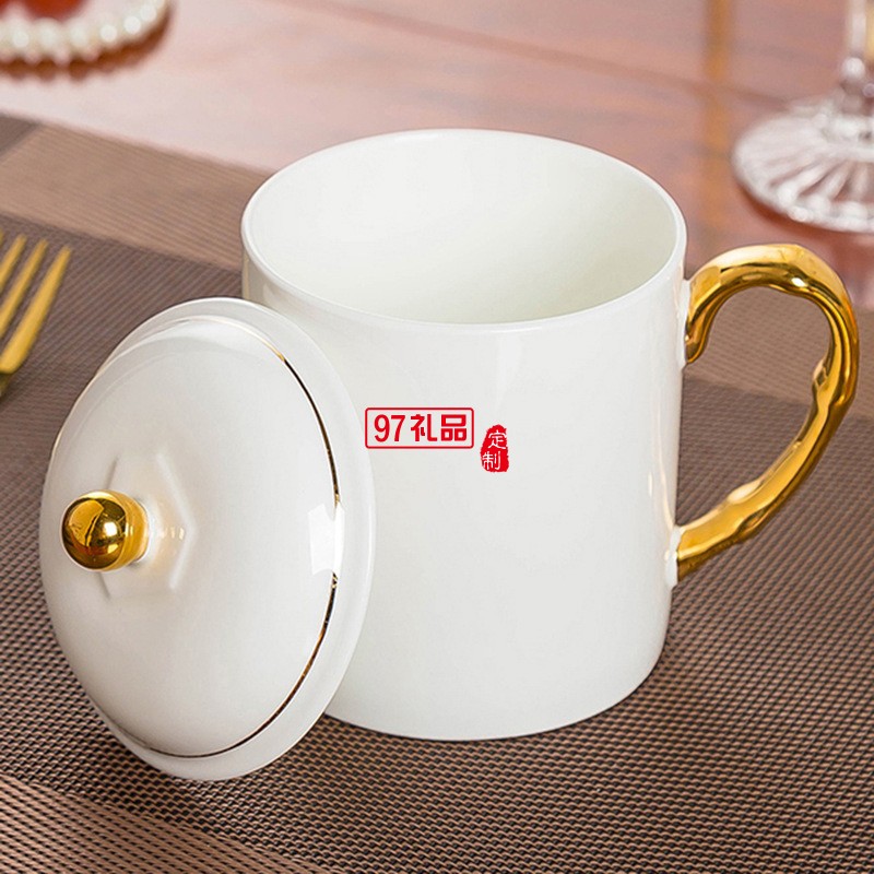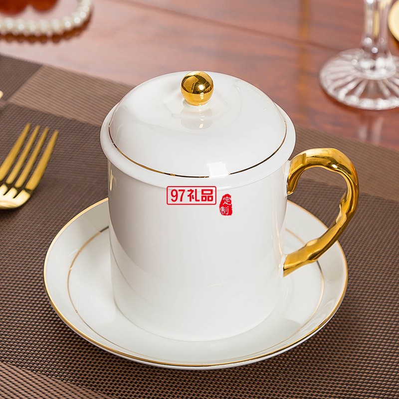中秋國(guó)慶節(jié)禮品辦公會(huì)議杯帶蓋景德鎮(zhèn)陶瓷茶杯450ML明珠杯碟定制