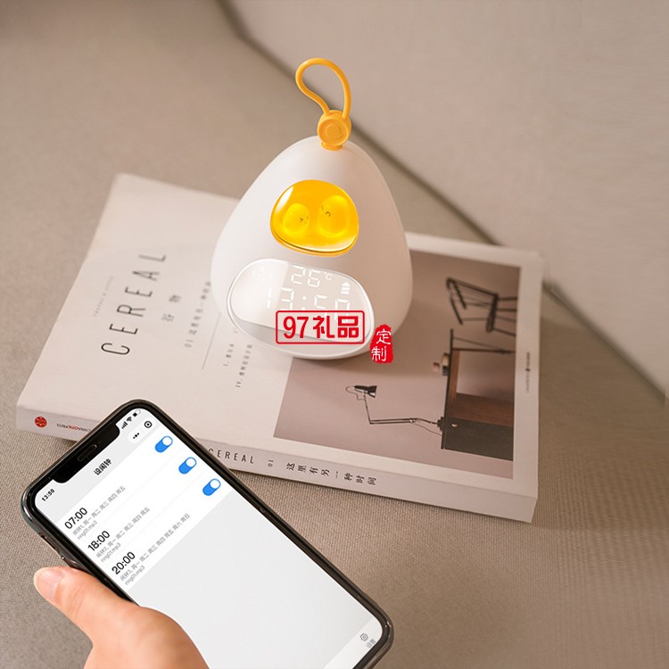 usb充電床頭led小夜燈小程序兒童鬧鐘鳥巢時(shí)光鬧鐘