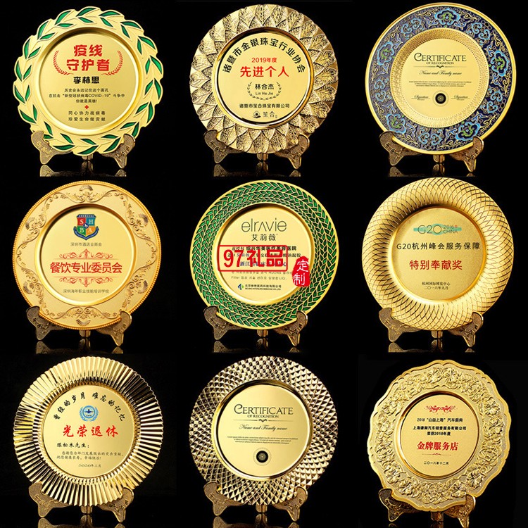 鋅合金紀念盤金箔金屬公司退伍制作表彰獎牌